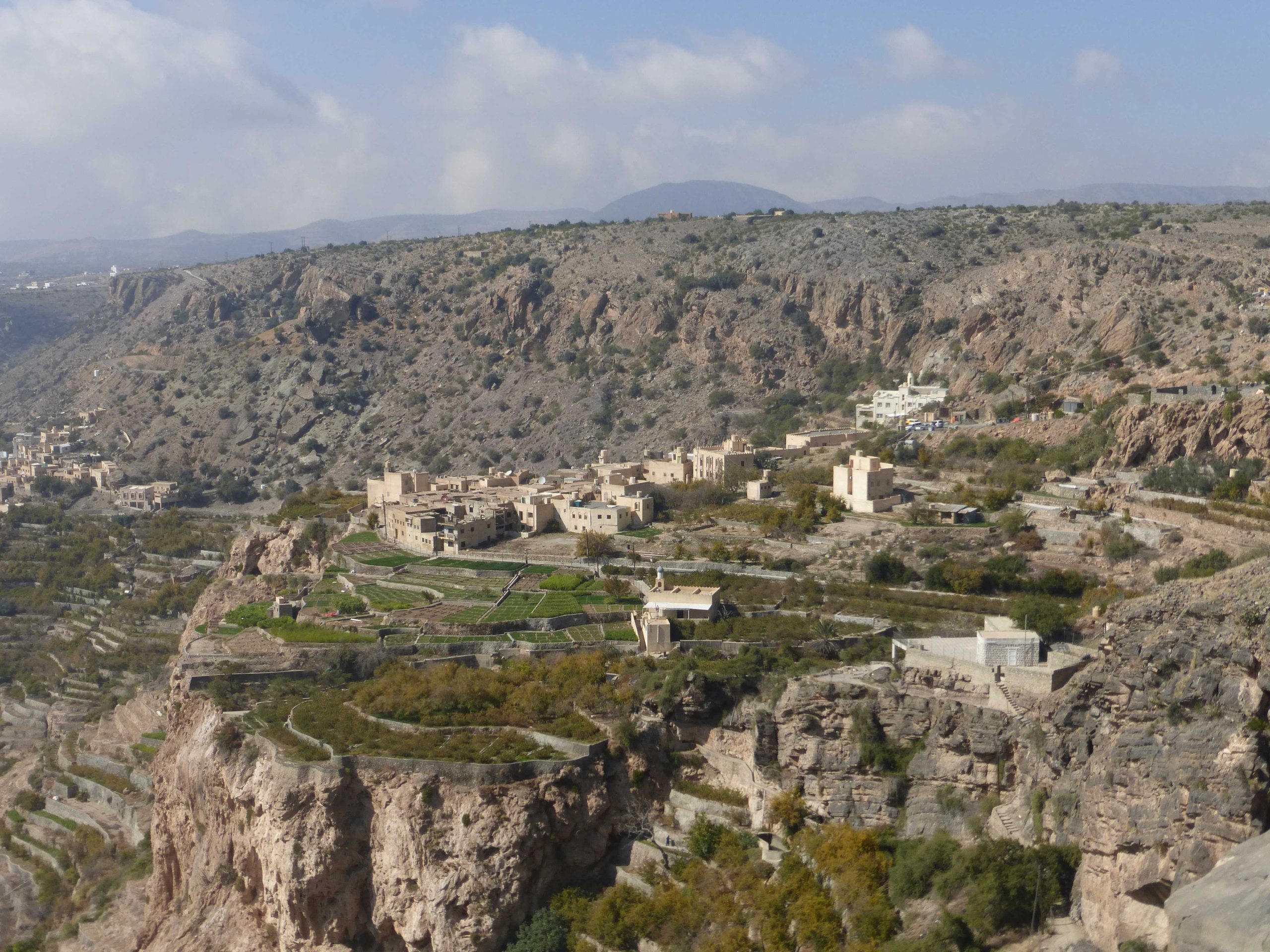 Tag 7 Nizwa – Birkat Al Mouz – Jebel Akhdar – Muscat – Salalah: Spaziergang durch die Datteloase Birkat Al Mouz entlang des Bewässerungssystems Falaj, Fahrt auf das Saiq Plateau, Flug nach Salalah