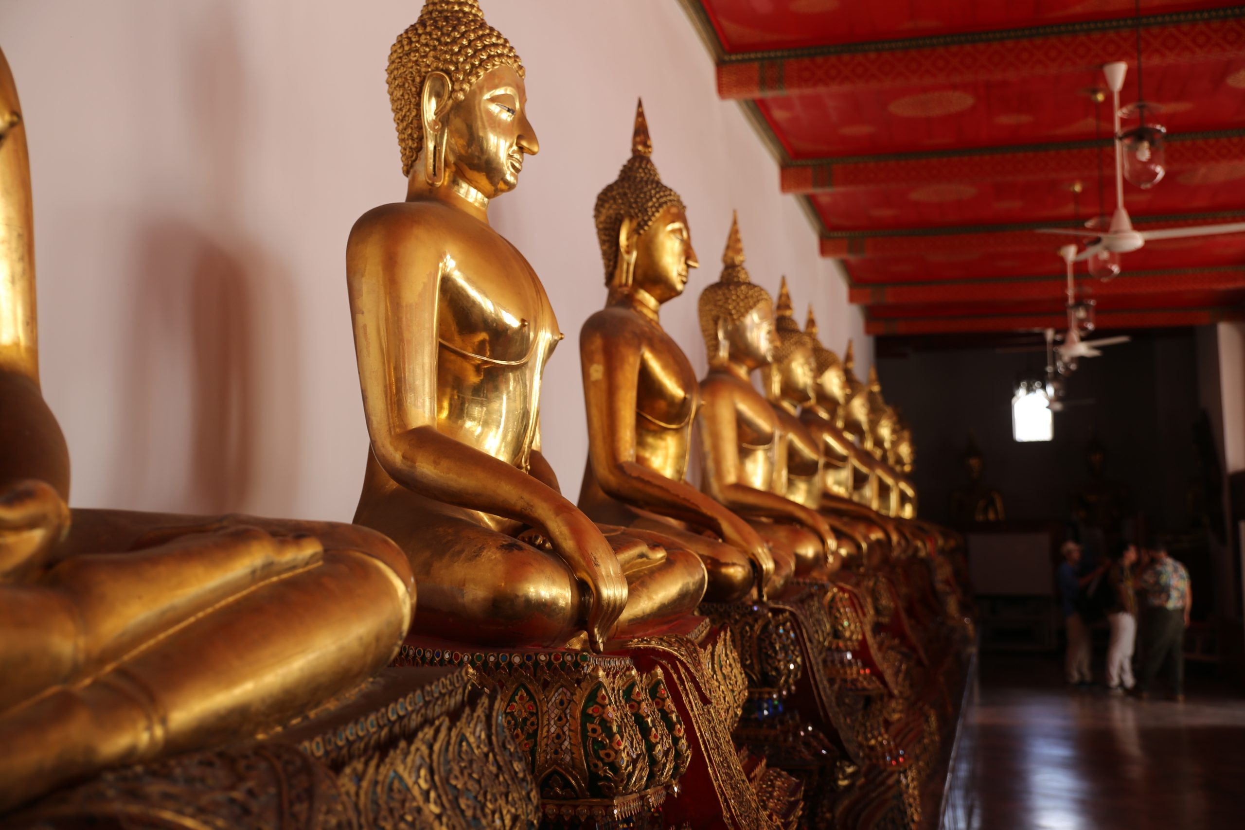 Nachdem wir in Bangkok gelandet waren, haben wir schnell unseren Reiseführer Cha am Flughafen entdeckt. Er war und ist einfach ein toller Mensch. Er hat uns mit seiner herzlichen Art gleich empfangen und uns zu den Bussen gebracht. Anschließend fuhren wir zu unserem Hotel in Bangkok. Leider konnten wir hier noch nicht einchecken, Ankunft war 10.30 Uhr – die Zimmer waren noch nicht bezugsfertig. Das ist aber der einzige Wermutstropfen, den wir zu berichten haben. Nach dem langen Flug haben wir uns also in der Lobby, anstatt auf dem Zimmer, frisch gemacht und umgezogen, um anschließend mit dem Boot durch die Kanäle von Bangkok zu fahren. Dabei konnten wir die ersten Tempel und Buddhas sehen und waren direkt fasziniert.