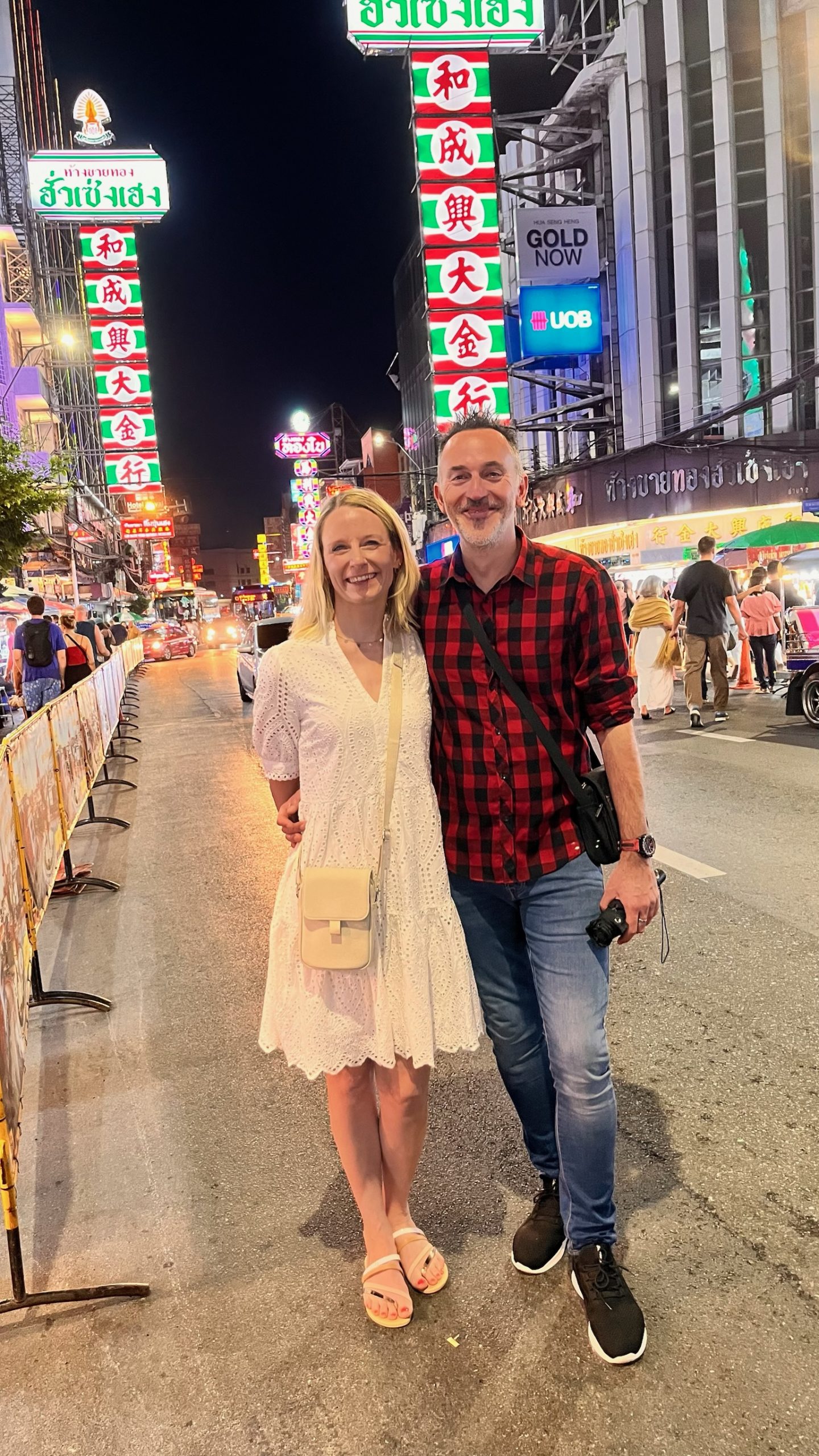 Am nächsten Morgen ging es weiter zum Königstempel Wat Pra Keaw, zum schlafenden Buddha und zu den Frischblumenmärkten. Alles wieder absolut einzigartig und besonders! Wir waren geflasht! Den Abend haben wir allein verbracht, China Town angesehen, „Würmer“ und „Heuschrecken“ als Delikatessen ausprobiert und mit dem Tuk Tuk ging die Fahrt dann wieder in Richtung Hotel.